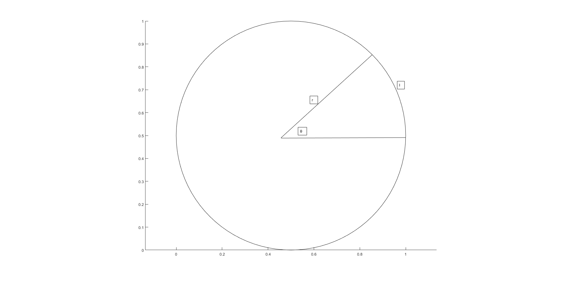 如上图所示,平面角,简称角度定义为圆的弧长与半径之间的比值,单位为弧度(rad)。 $$ \theta=\frac{l}{r} $$