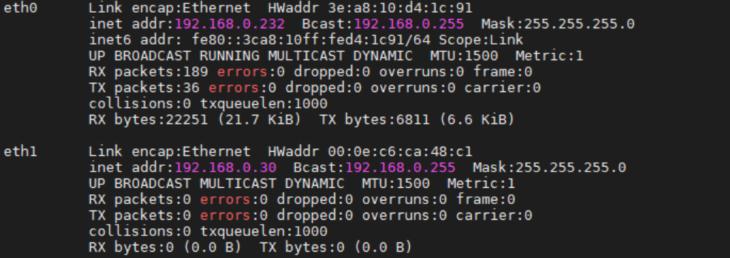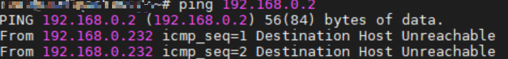 因为两个网卡都在同一个网段,所以如果这个时候直接和我们的主机(IP192.168.0.2)进行ping,因为优先级的原因,会导致有一个网卡会无法ping通主机。